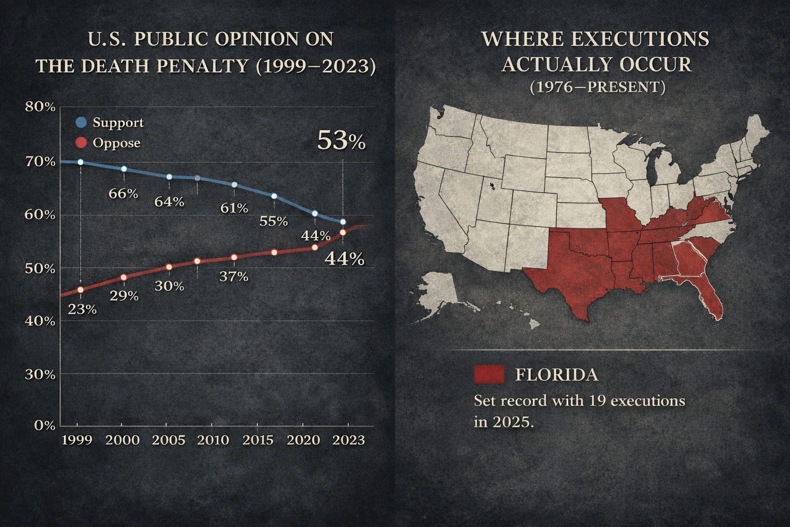 And, that’s the part that really gets me. While opposition to the death penalty is steadily rising and support declining, there are a few states where politically there is a push going on: